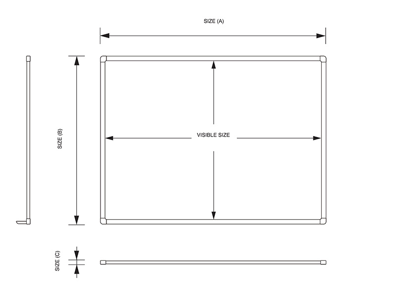 | Natúr színű, csiszolt fenyőfa keret. | Az írótáblákhoz hasonló kivitelű natúr eloxált alumínium keret. |