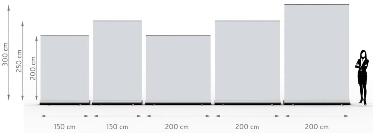 Az Óriás roll-up állvány kétféle szélességben és háromféle magasságban kapható. Alábbiakban a névleges méreteket láthatja, a MÉRETEK fülön pedig minden adatot megtalál.
