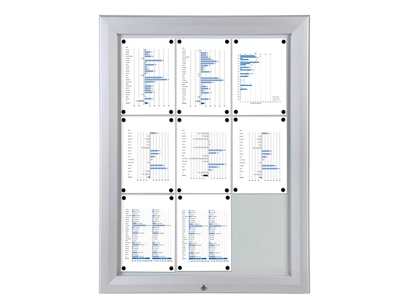 A kifejezetten hosszútávú kültéri használathoz kifejlesztett Prémium vitrinek felépítése lehetővé teszi, hogy gyakorlatilag bármilyen kültéri körülmény közt helyt álljon. A vitrin ajtaján körben egy gumi tömítés segíti, hogy a vitrin ne tudjon beázni, így IP56 szabványnak megfelelő kivitel (por ellen védett, kisnyomású vízsugár ellen védett minden irányból). A Prémium vitrin hátlemeze fém, amire mágnessel rögzíthetőek a papír lapok, ráadásul táblafilccel is írható, szárazon törölhető. A vitrin zárható, cilinderzáras zárszerkezettel együtt, két darab kulccsal szállítjuk.