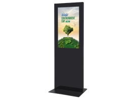 Keret nélküli, digitális tartalmakat lejátszó totemoszlop. Jól szellőző kialakítás, akár napi 24 órában is működtethető.